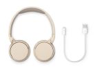 Závěsná vánoční dekorace. Lesklé i matné koule různých velikostí v barevném odstínu champagne, napevno upevněné v dřevěném rámečku představujícím vánoční kouli. Ozdobené stuhou se zlatým dekorem. Průměr celkové dekorace 21cm.