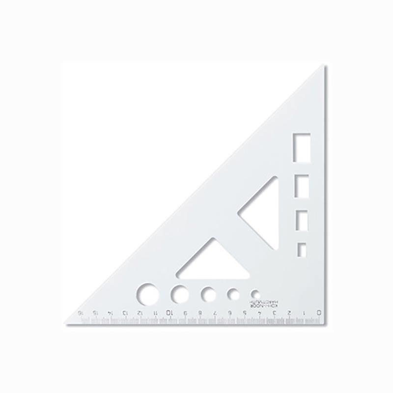 Trojúhelník KOH-I-NOOR transparentní s ryskou a šablonou, 16 cm