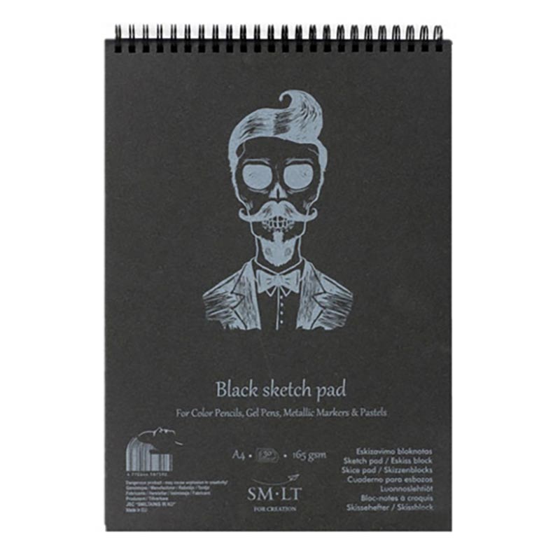 Popis k výrobku: SMLT Malování na malbu - černý A4, 165g, 30 l SMLT skicák je ideální pro práci s barevnými tužkami, pastelkami, gelovými pery, akrylovými a akvarelovými barvami. Černý papír, bez kyselin, hustota 165 g. Blok obsahuje 30 listů, formát A4.