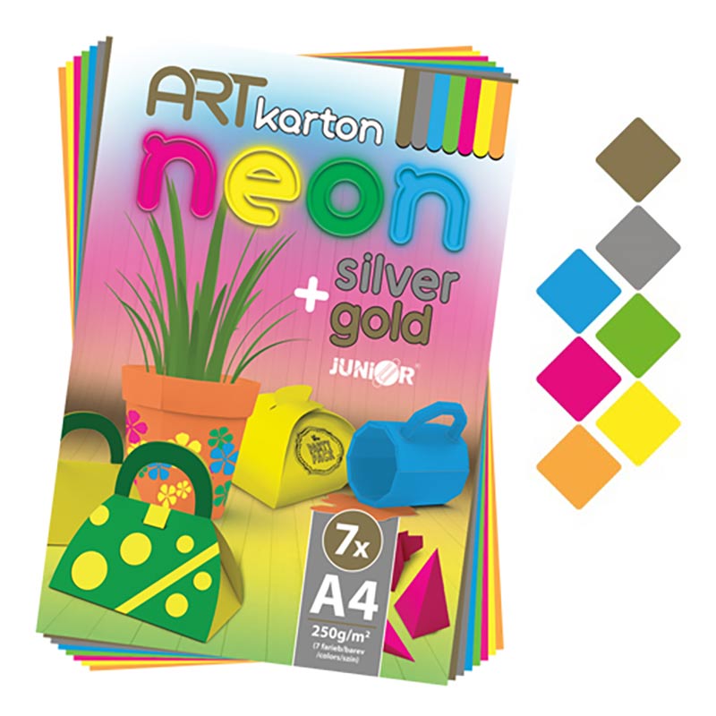 Popis k výrobku: Složka barevného papíru A4 (výkresů) ART karton 7 listů /7 barev NEON, 250g/m2