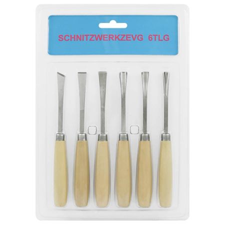 Sada rydiel na linoryt - 6 různých typů s dřevěnou rukojetí pro pohodlné nakládání.