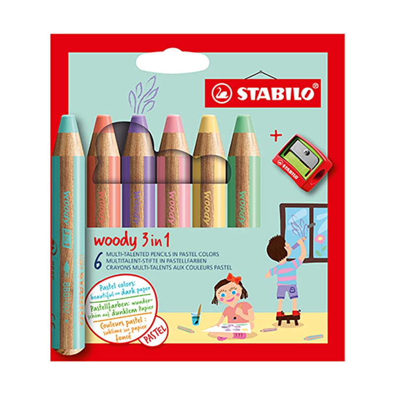 Popis k výrobku: Barvička, vodovka a voskovka - STABILO woody 3 v 1 - 6 ks balení s ořezávatkem