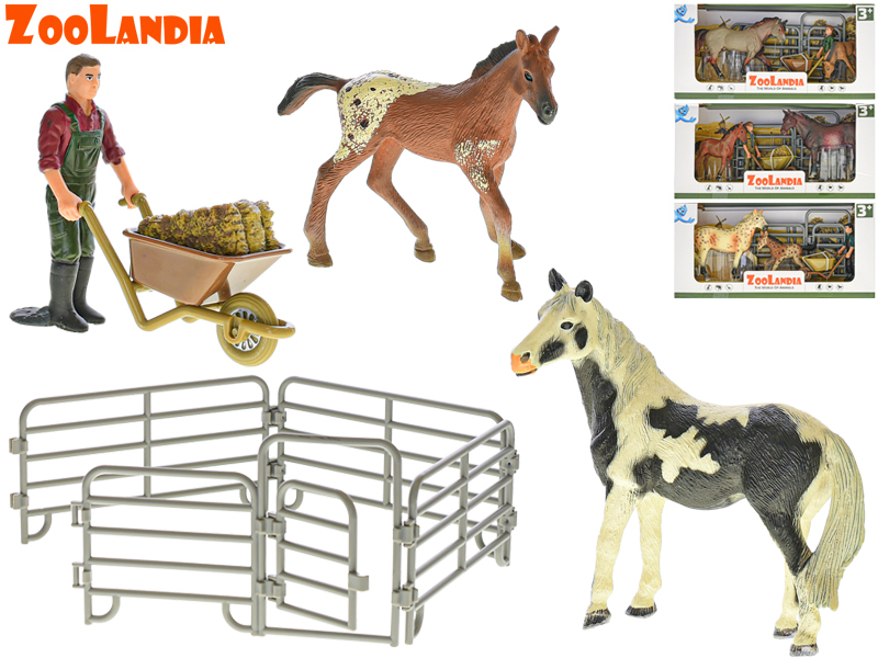 Popis k výrobku: Zoolandia kůň s hříbětem a doplňky 4druhy v krabičce Sestav si svou vlastní farmu s plastovými figurkami z kolekce Zoolandia. Balení obsahuje koně s hříbětem a doplňky. Dostupné jsou 4 druhy - bílý s fleky, hnědý s fleky, světle hnědý, tmavě hnedý. Vhodné pro děti od 3 let.