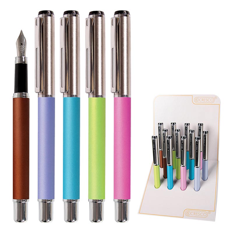 Bombičkové pero v 5 barevných variantách. - inkoustové bombičkové pero s vyměnitelnou náplní o průměru těla 10 mm a délce 130 mm Materiálové složení: kov/plast