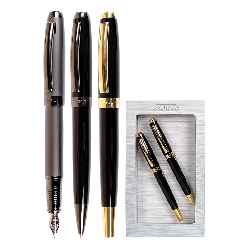 Bombičkové a kuličkové pero v dárkové krabičce ve 3 barevných variantách. - kuličkové pero s tlačítkovým otočným mechanismem o průměru těla 11 mm a délce 140 mm - inkoustové bombičkové pero s vyměnitelnou náplní o průměru těla 11 mm a délce 130 mm Materiálové složení: kov/plast