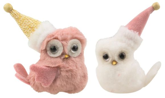 Dekorace Sovička v čepici plyšová 10 cm na klipu / 18045