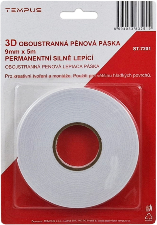 lepící páska oboustr.pěnová bílá 9 x 5 blistr ST-7201