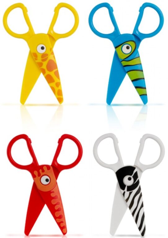 dětské nůžky se zvířecími motivy s okem: chobotnice, ryba, žirafa, zebra