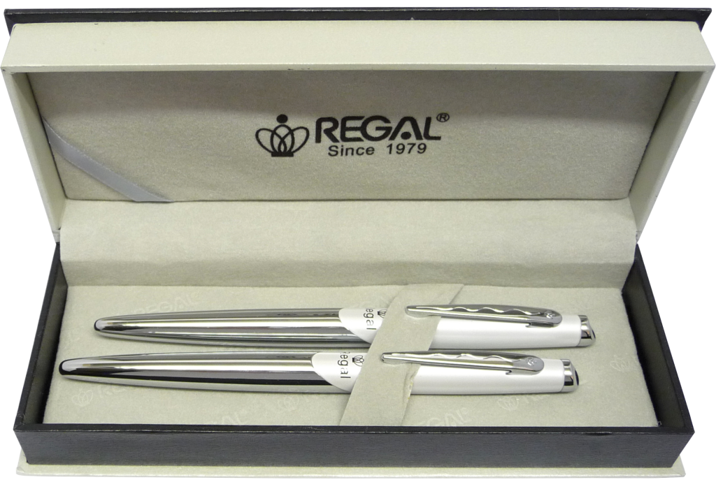 kuličkové pero s vyměnitelnou gelovou náplní + inkoustové pero s konvertorem a iridiovým hrotem uložené v dárkové krabičce, stříbrné kovové tělo a barevné vičko se stříbrným klipem, náplň modrá + dárková taška Regal