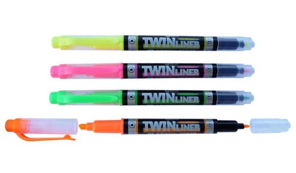 vysoce kvalitní, oboustranný, vhodný pro zvýraznění textu na všech druzích papíru, včetně samokopírovacího a faxového, 4 barvy, šíře stopy 0,7 + 4 mm