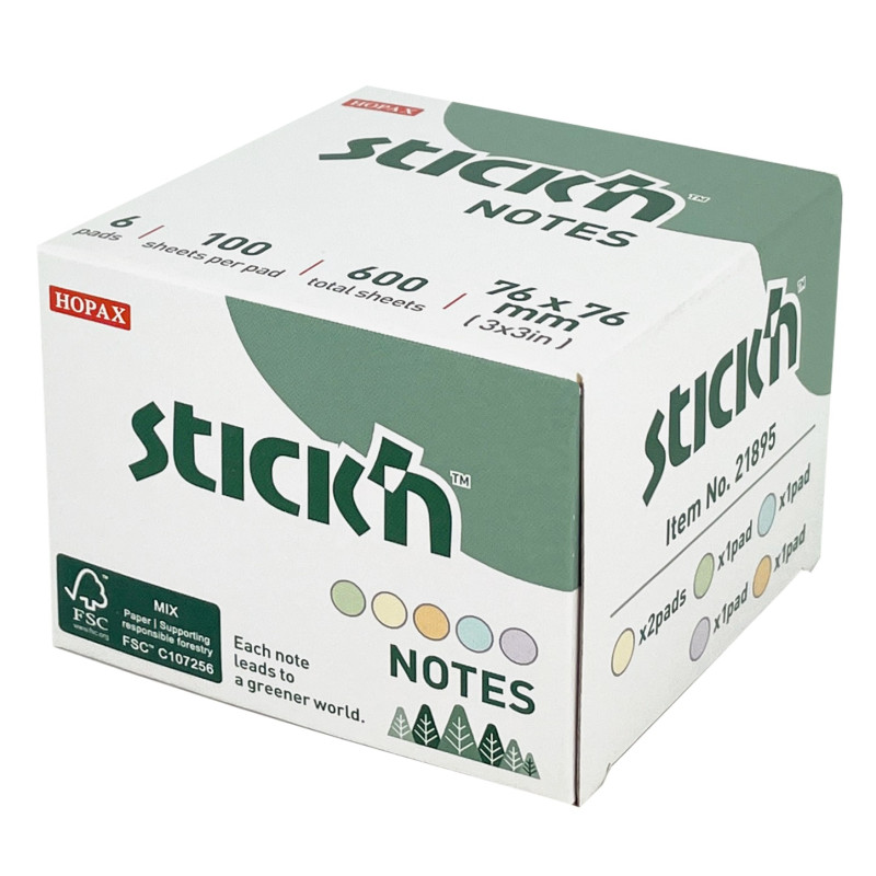 Samolepicí bločky Stick´n by Hopax FSC - 76 x 76 mm / 6 x 100 lístků / pastelové barvy