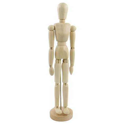 Figura na podstavci vyrobena z kvalitního dřeva slouží jako předloha při kresbě, malbě a modelování, je neodmyslitelnou součástí výbavy každého výtvarníka. Jednotlivé části těla jsou pohyblivé a díky funkčním kloubem jdou nastavit do požadované polohy. Figura se používá zejména při ztvárnění figurálních kompozic. Velikost: muž / 30 cm.
