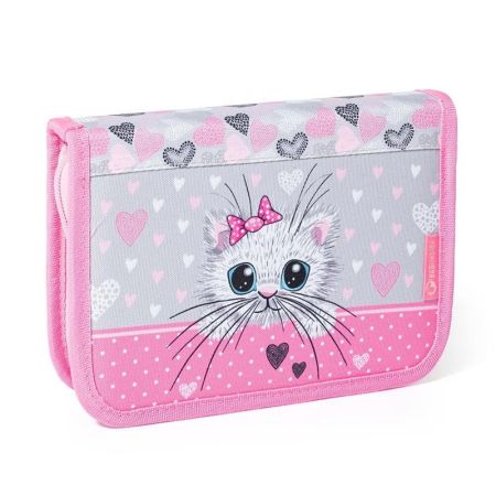 Dvouklopý školní penál včetně rozvrhu a samolepek pro žáky 1. stupně (nenaplněný).