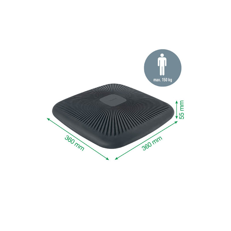 Popis k výrobku: Balanční polštář Leitz ERGO - tmavě šedá ergonomický balanční vzduchový polštář s certifikací IGR, zmírňuje tlak na páteř a zlepšuje krevní oběh, moderní a minimalistický design, čtvercový tvar pro lepší ergonomii díky zvětšené sedací ploše v porovnání se standardními kulatými polštáři a intuitivní správné polohování na židli, rozměry 360 x 360 x 55 mm