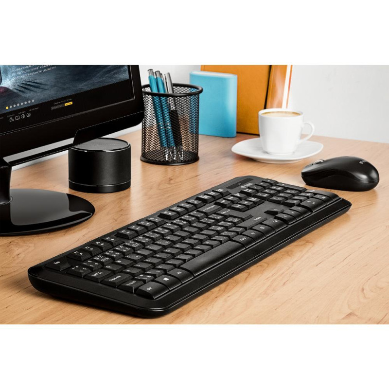 sada bezdrátové klávesnice a myši je perfektní řešení pro domácí i kancelářské použití, kompaktní rozměry klávesnice a ergonomický design v kombinaci s tichými klávesami zajišťují perfektní pocit z psaní, multimediální klávesy vám umožňují spouštět a ovládat některé nejpoužívanější aplikace stiskem jediné klávesy, dlouhá životnost kláves a odolnosti vůči, myš je vhodná pro leváky i praváky, a její citlivost lze nastavit až na 1 600 DPI, bezdrátová provozní vzdálenost je až 10 metrů a tato sada je spojena s PC pomocí pouze jednoho nano přijímače, rozměry klávesnice 468 x 155 x 23 mm, rozměry myši 100 x 60 x 39 mm