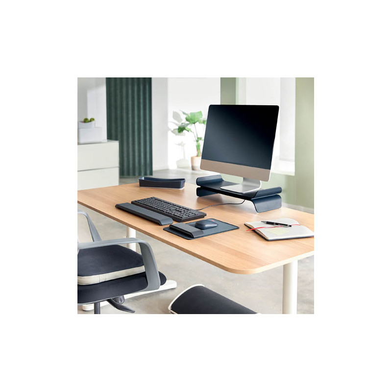 Popis k výrobku: Stojan pod monitor Leitz ERGO - tmavě šedá ergonomický stojan pod monitor pro maximální pohodlí při správném a doporučeném nastavení do ideální ergonomické polohy, moderní a minimalistický design, 2 výšková nastavení, bezpečně udrží až 27" monitory, pod podstavcem je prostor pro uložení klávesnice nebo jiných pracovních pomůcek, rozměry 209 x 112 x 438 mm