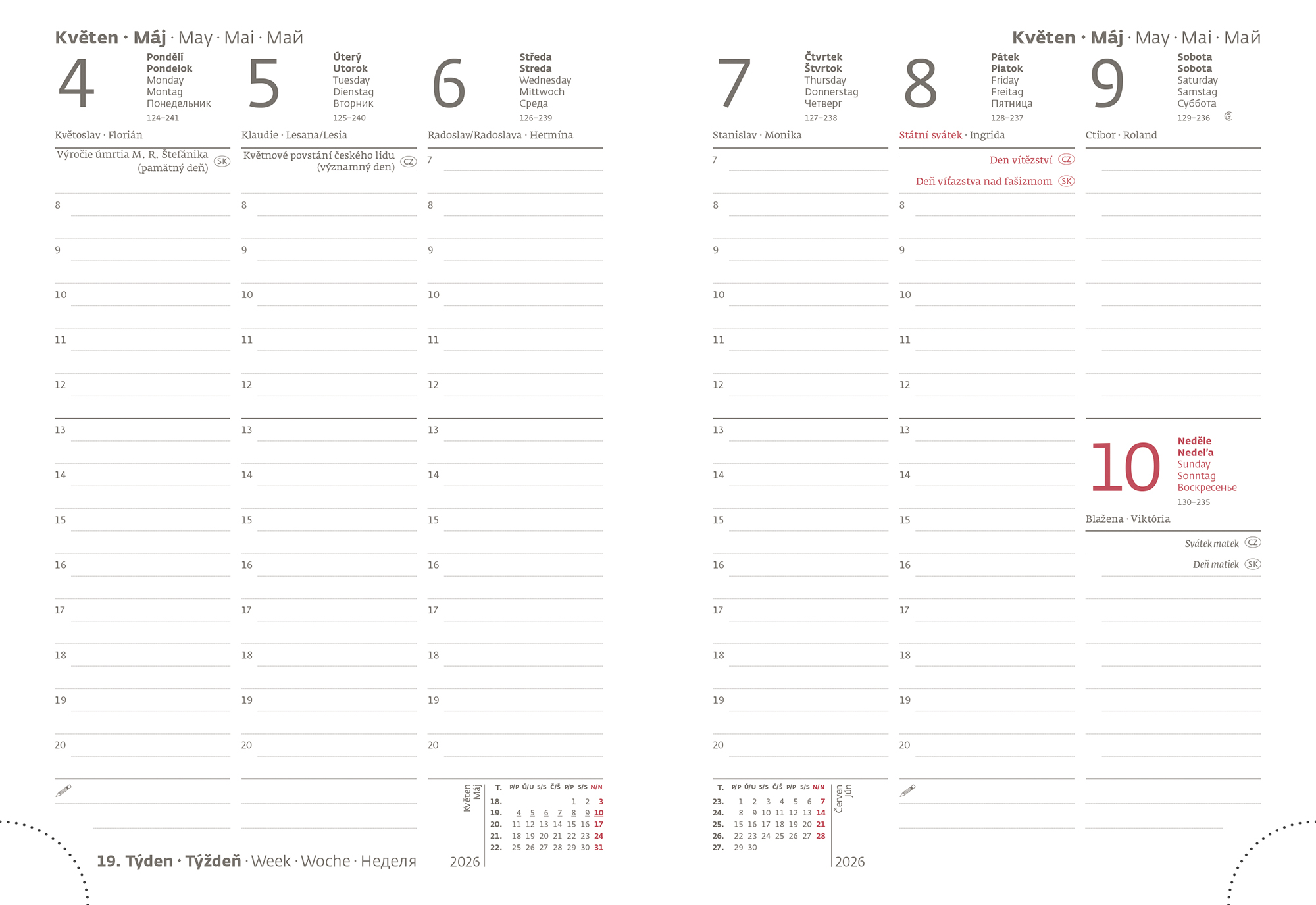 originální designové diáře se zajímavými motivy, které jsou upraveny speciální laminací s hevábným efektem, díky čemuž jsou velmi příjemné na dotek, doplněné gumičkou, mezinárodní svátky, plánovací kalendář, osobní údaje, měsíční přehled, adresář, formát 12 x 16,5 cm