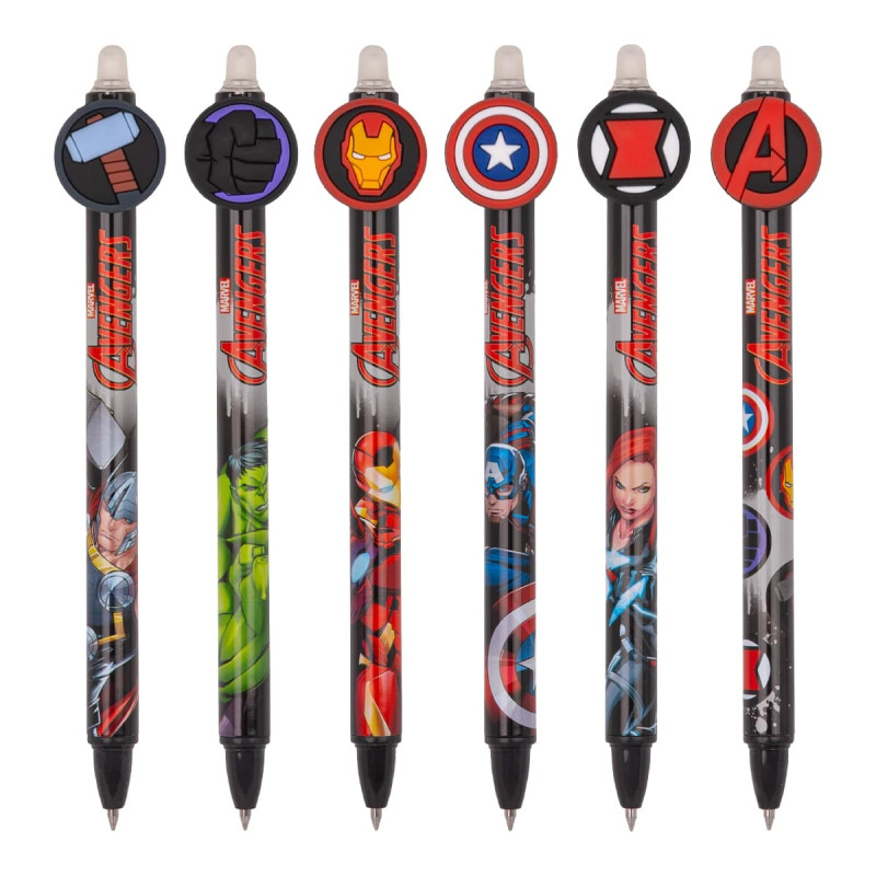 Popis k výrobku: Roller Colorino mazací - Avengers II / 0,5 mm praktická gumovatelná pera pro děti s motivy, kvalitní inkoust lze v případě potřeby jednoduše vygumovat a přepsat, 8 různých motivů, barva náplně: modrá, šířka stopy: 0,5 mm, stiskací mechanika, dostupná náhradní náplň