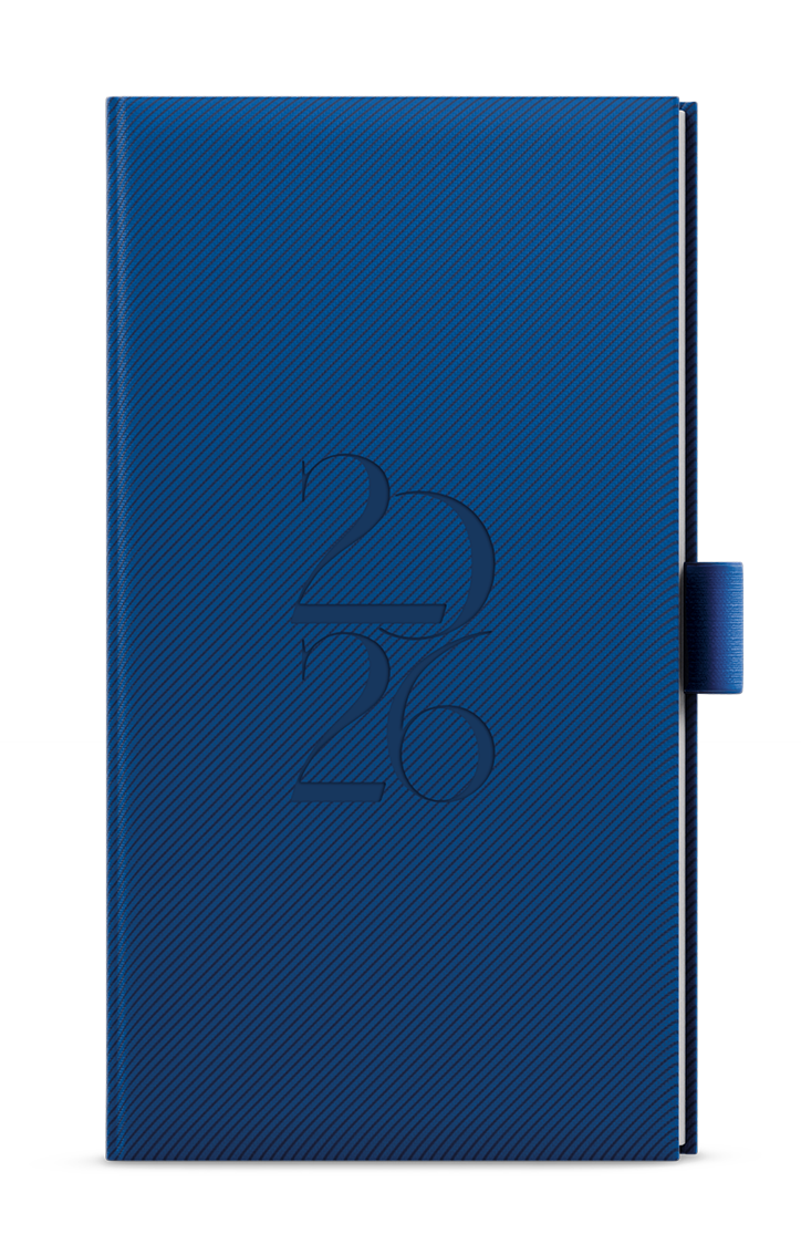 jemně strukturovaný matný materiál, jednostranná výplň desek, ražba roku, rovný hřbet, poutko na propisku v barvě potahu, české a slovenské jmenné kalendárium, dny a měsíce v 5 jazycích (CZ, SK, ANG, D, R), mezinárodní svátky, měsíční fáze, roční období, letní a zimní čas, místo na poznámky, formát 7,5 x 15 cm