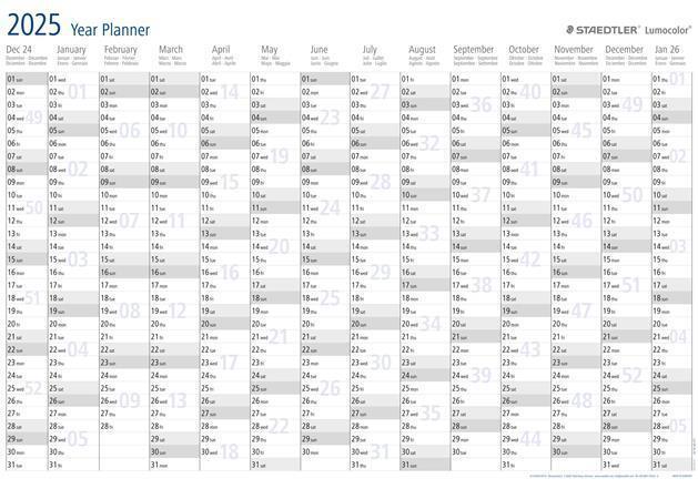Popis k výrobku: Roční plánovač 2025 Lumocolor, 84 x 60 cm, STAEDTLER 641 YP-1 25 Nástěnný plánovací kalendář
