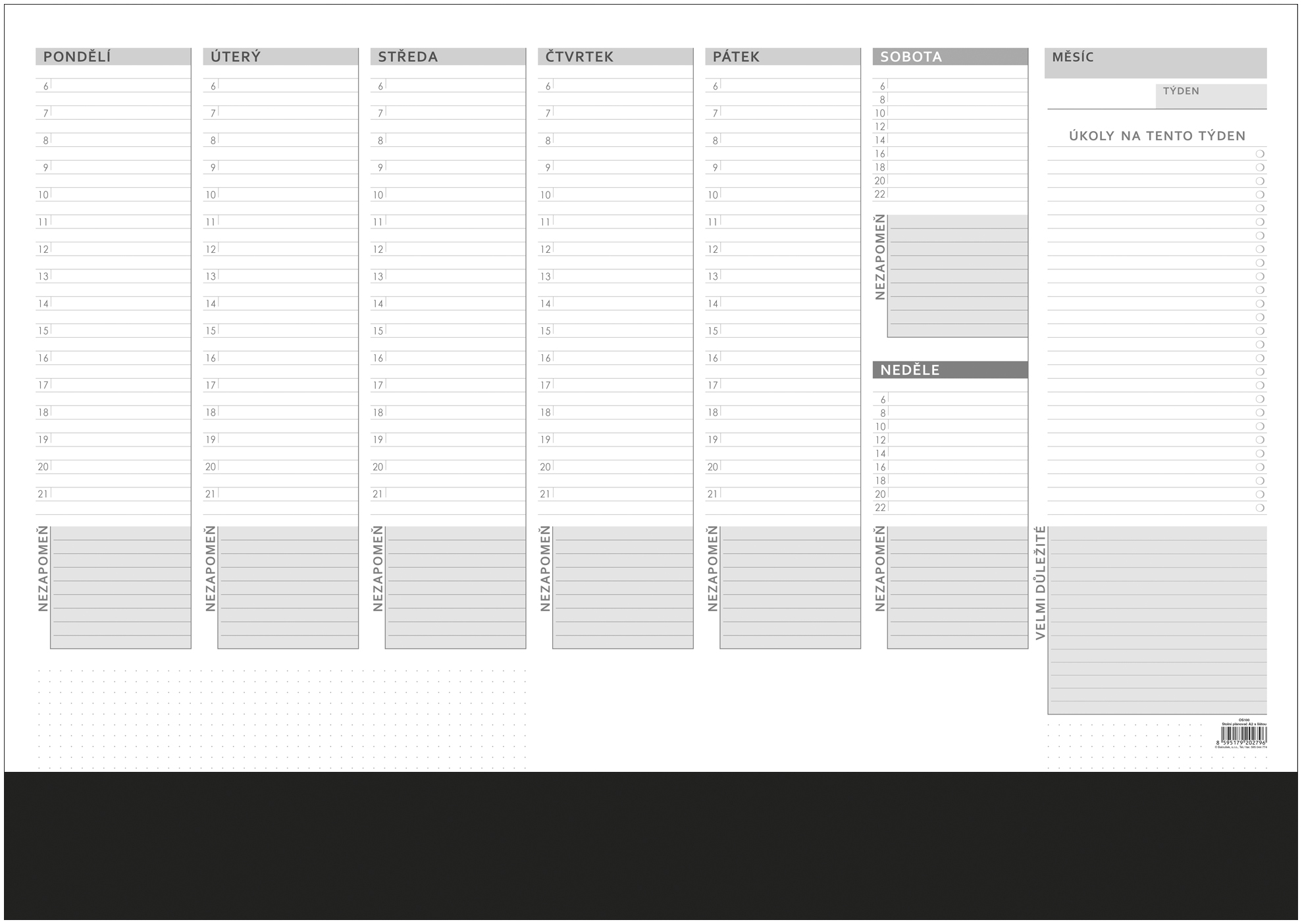 Plánovací týdenní stolní mapa - OS100 / A2 s lištou