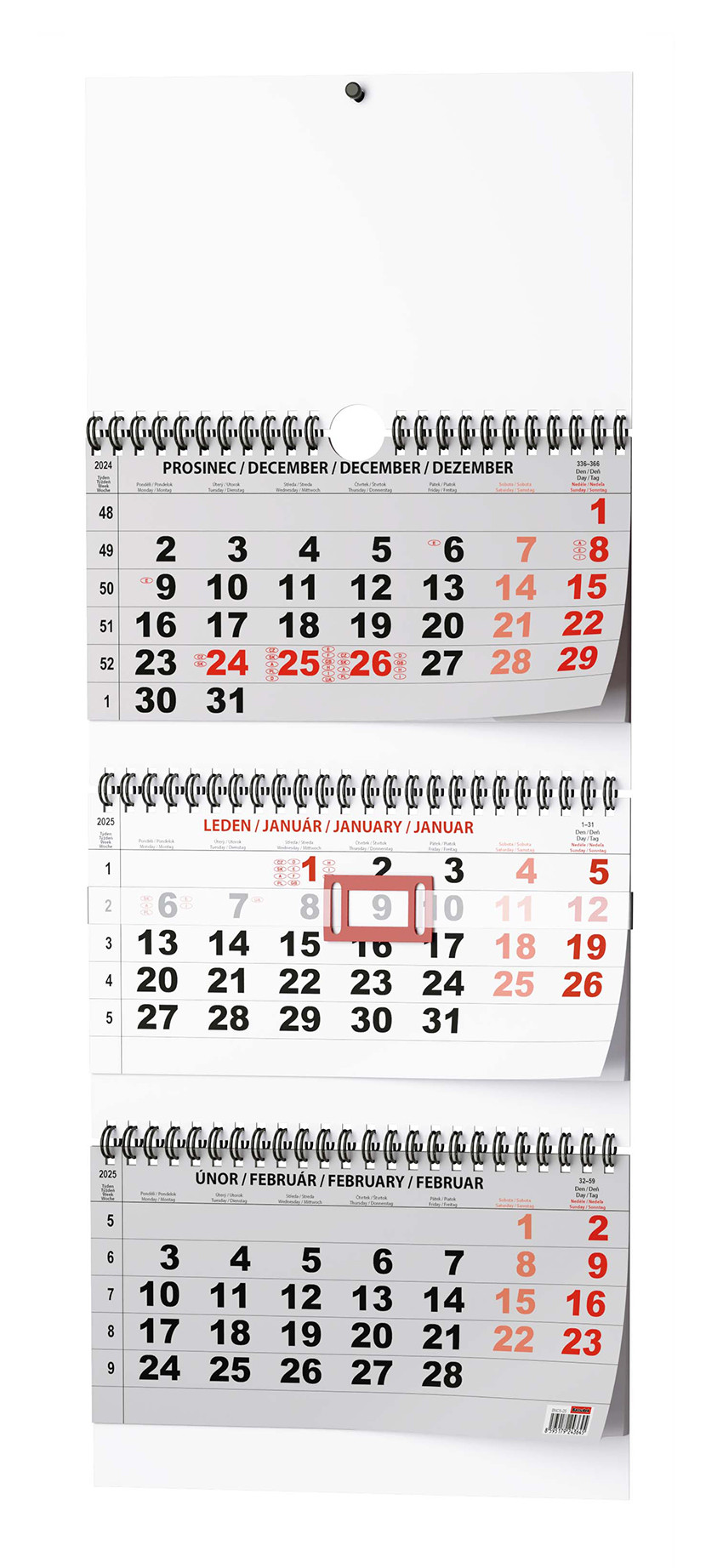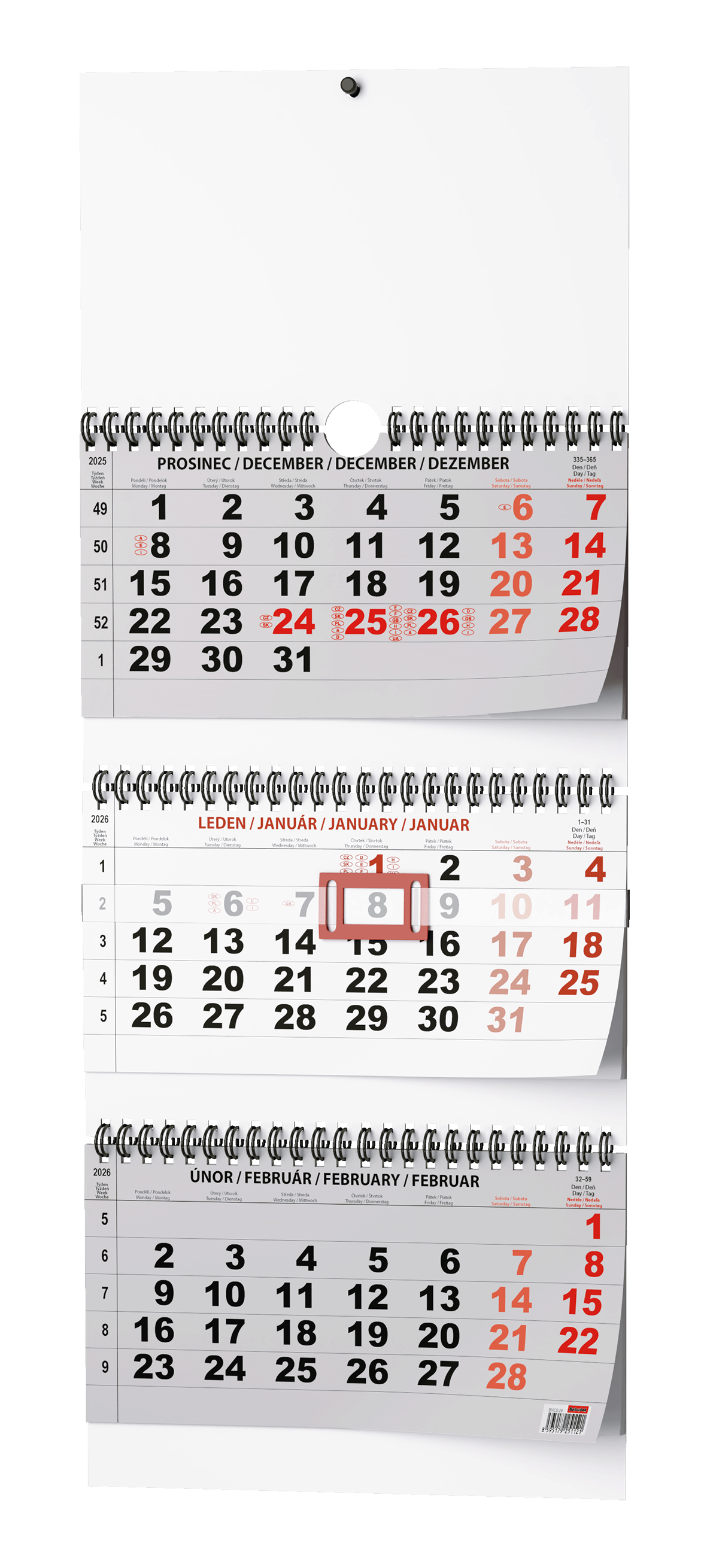 Nástěnný kalendář 2026 - tříměsíční šedý se jmenným kalendářem Kód: N323-26_10 82,21 Kč bez DPH 67,94 Kč