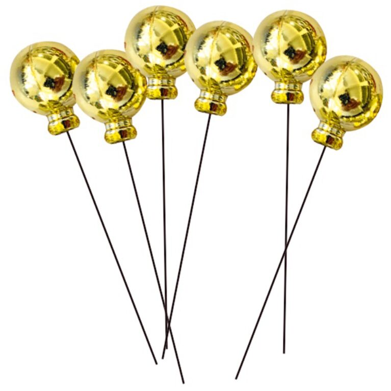 Plastové kuličky na drátku 2 cm, 8 ks, zlaté, v krabičce (4726)