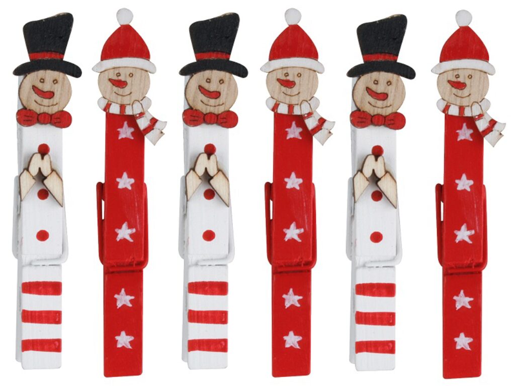 Sněhuláci na kolíčku 8,5 cm, 6 ks červení (30044)