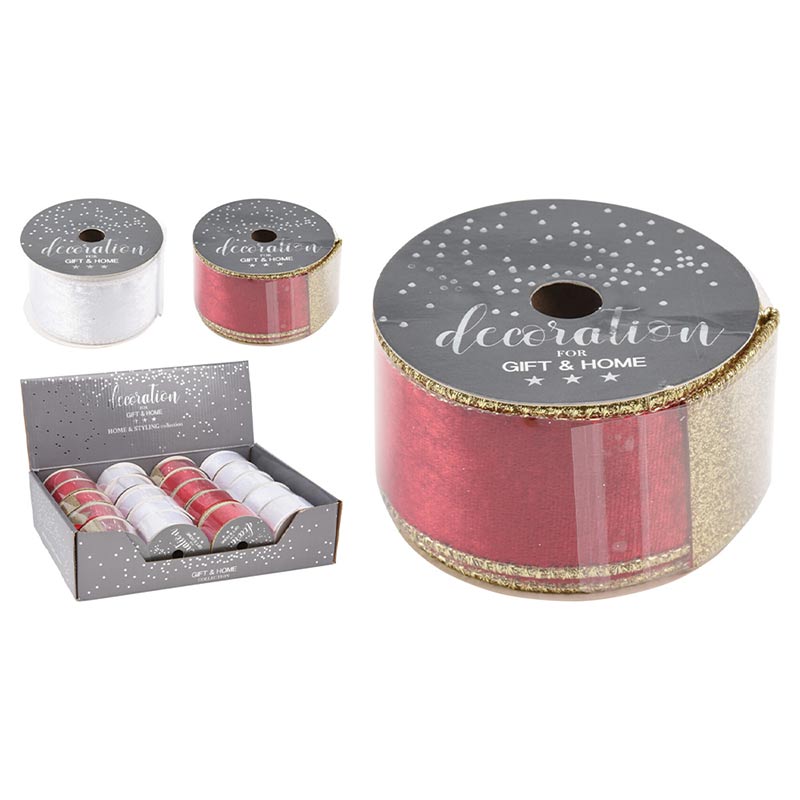 Stuha dekorační, velvet 38x2700 mm (bílá, červená)