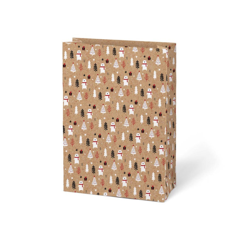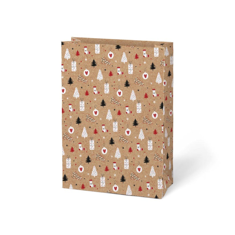 Vánoční, dárkový papírový sáček KRAFT. Sáčky jsou vyrobeny z pevného kraftového papíru. Jsou ideální na zabalení vánočního cukroví, perníčků nebo sušeného ovoce. K uzavření sáčku můžete použít dekorativní kolíček, samolepící jmenovku nebo stuhu a vytvořit tak jedinečný dárek.
