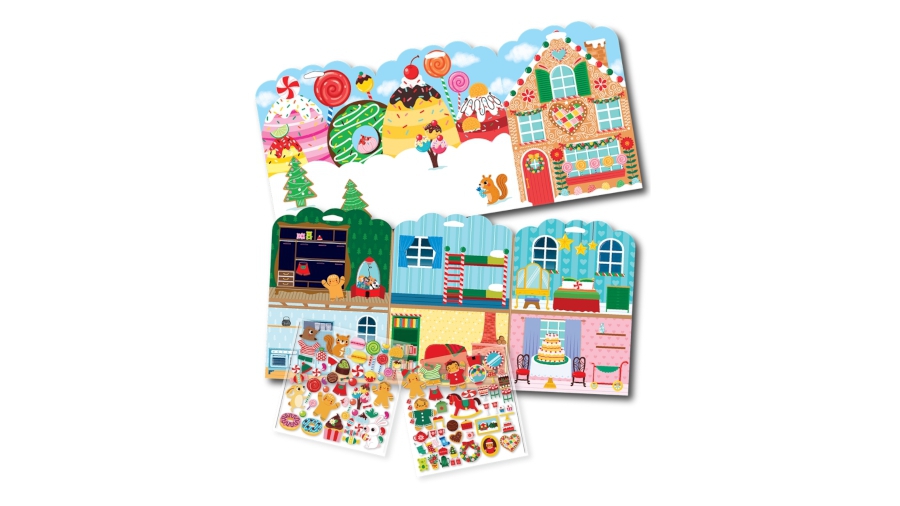 Pěnové samolepky pro opakované použití. Set krásných samolepek s motivem perníkové chaloupky. Samolepky drží na hladké ploše bez lepidla. Lze je tedy opakovaně používat a přelepovat na hrací ploše nebo na různá hladká místa. Děti rozvíjí jemnou motoriku a zároveň si užijí plno zábavy. Skvělá aktivita pro vytváření si vlastního zábavného světa. Balení obsahuje 105 pěnových samolepek pro opakované použití a oboustrannou rozkládací hrací plochu.