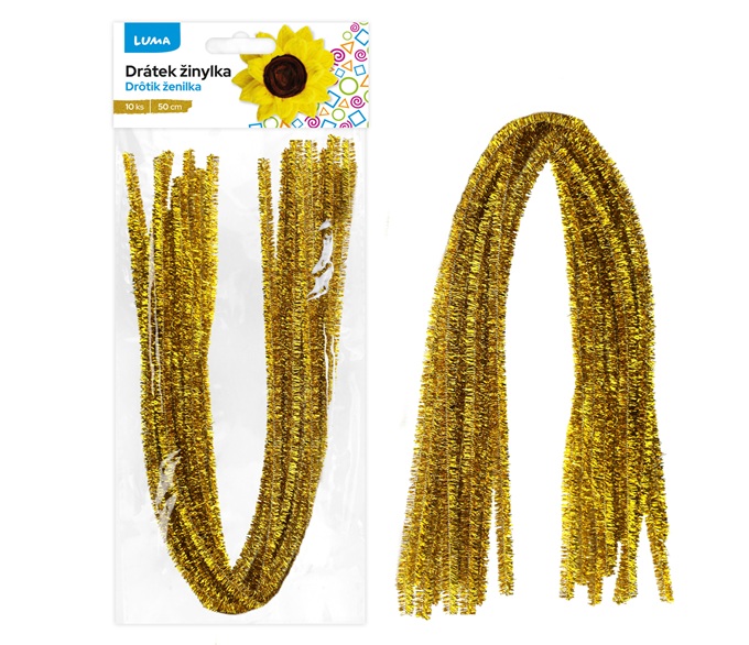 Drátek žinylka 500 x 8 mm - zlatý / 10 ks