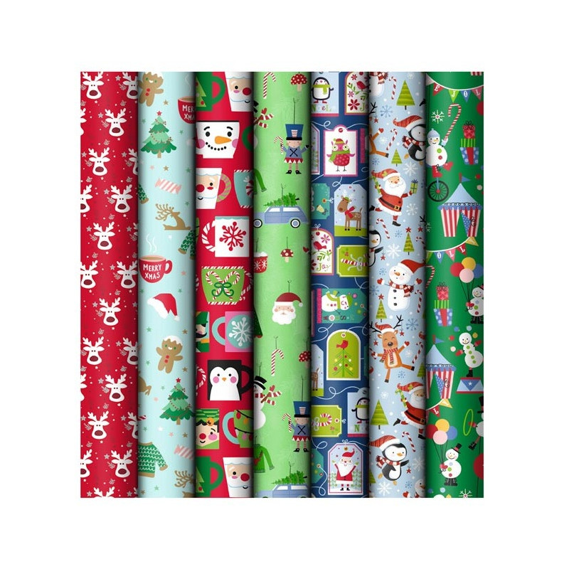 Vánoční balicí papír v roli v mixu 7 motivů. Připravte se na Vánoce a udělejte radost svým blízkým nejen obsahem, ale i krásným vzhledem Vašich dárků. Nezapomeňte, že krásně zabalený dárek přináší ještě větší radost. U nás najdete vše, co potřebujete pro dokonalé zabalení dárků - od balicího papíru až po stužky a jmenovky.