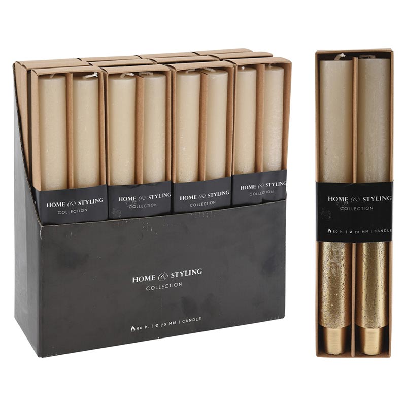 Večerní svíčky 25 cm, krémová / metalická (2 ks)