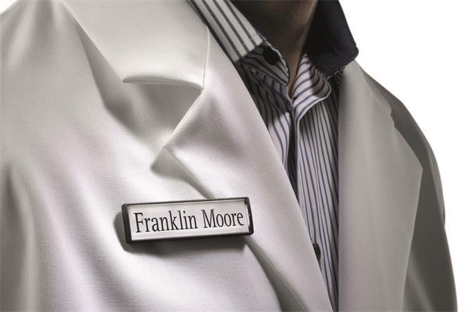 Elegantní a praktická jmenovka s magnetem pro snadné a šetrné připevnění na oblečení.