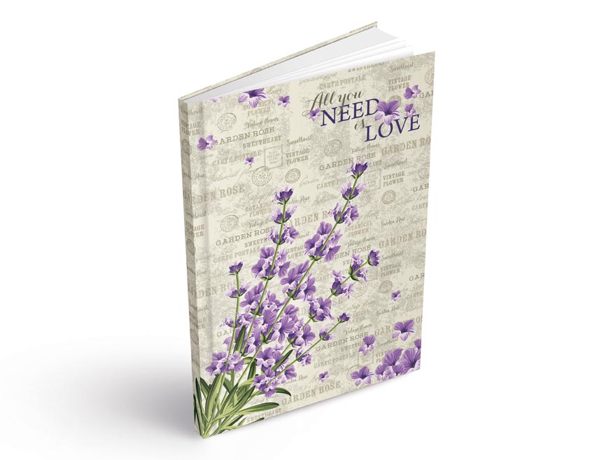 Záznamová kniha MFP bez linek. Desky jsou z pevného lepeného kartonu s laminem. Na titulní straně jsou levandule a nápis All you nees is love. Tyto bloky jsou opatřeny vazbou V8, která patří mezi nejpropracovanější a nejpevnější vazby. Počet listů: 100 Formát: A5 Motiv: levandule Text: All You Need is Love Uvedená cena je za 1 ks.