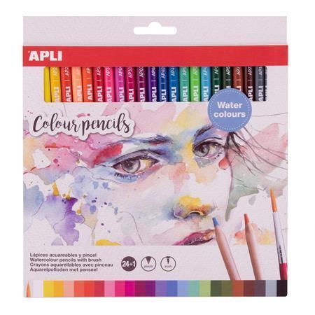 Popis k výrobku: Akvarelové pastelky se štětcem, 24 různých barev, sada, trojhranné, APLI 18913