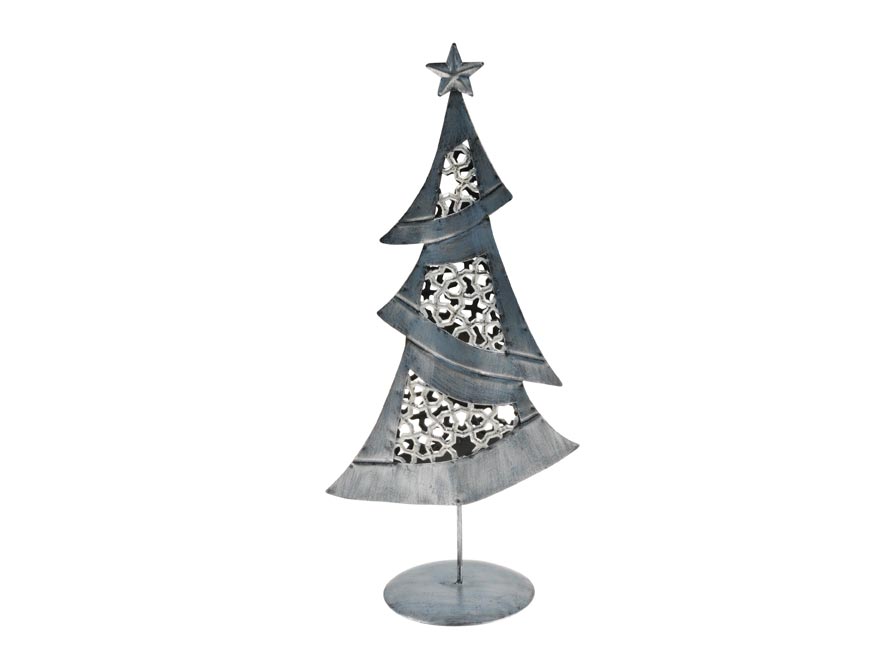 Stromek plechový stříbrný s 3D efektem. Vánoční stromek je vyřezávaný a má podstavec. Lze umístit na jakoukoliv plochu ke zkrášlení místnosti. Barva: stříbrná Velikost: 370 mm Uvedená cena je za 1 ks.