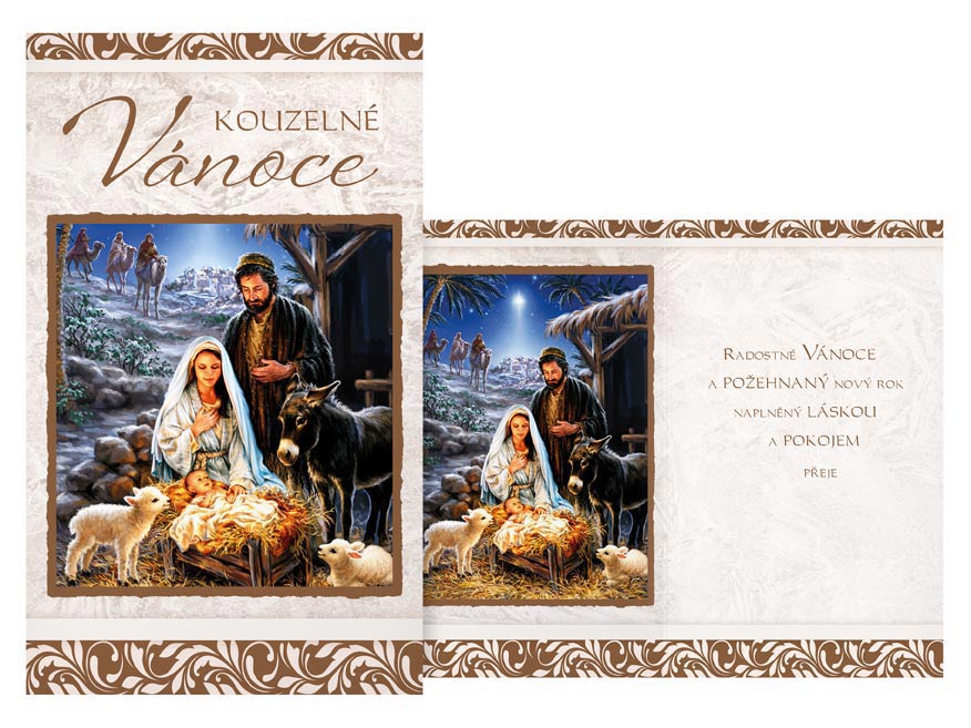 Vánoční přání. Vánoční přání má dnes ještě věší půvab než před lety. V dnešním světě digitalizace se lidé často rádi vrací k tomu, co měli rádi jako děti. Vánoční blahopřání Vám poskytne prostředek jak někomu od srdce popřát a udělat mu radost. Text na přední straně: KOUZELNÉ Vánoce Text uvnitř přání: Radostné Vánoce a požehnaný nový rok naplněný láskou a pokojem přeje Papír: pohlednicový karton Přání je baleno v sáčku, součástí balení je i dopisní obálka. Uvedená cena je za 1 ks.