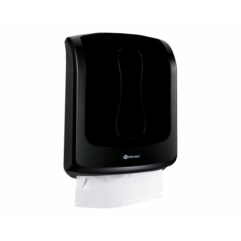 kapacita až 500 ručníků SLIM, okénko pro kontrolu množství ručníků v zásobníku, lze použít až 3 balíčky papírových ručníků, vyrobeno z kvalitního ABS plastu, dostupný v černé barvě, uzamykatelný na klíček, DŮLEŽITÉ UPOZORNĚNÍ: ZÁSOBNÍK JE URČEN POUZE PRO PAPÍROVÉ RUČNÍKY SKLÁDANÉ MERIDA SLIM 151933 - jednovrstvé nebo 151932 - dvouvrstvé, rozměry zásobníku: 35,6 x 26,7 x 11,9 cm