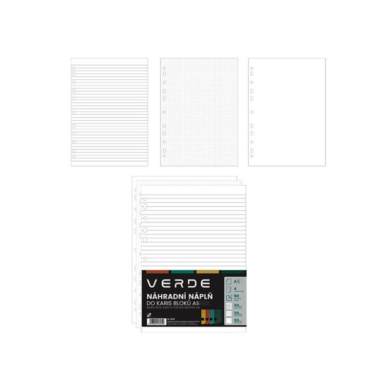 Popis k výrobku: Náhradní náplň do kroužkových záznamníků VERDE Karis - A5 / 90 listů