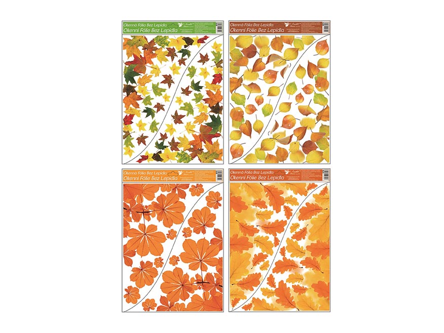 Dekorační okenní fólie v rohovém provedení s motivem podzimního listí. Rohové uspořádání fólií umožňuje efektivní a estetické umístění do rohů oken, čímž vytváří krásné přírodní orámování. Fólie je samolepicí, snadno aplikovatelná a po odstranění nezanechává žádné stopy, navíc je opakovaně použitelná. NÁVOD: 1. Sloupněte z podložky obrázek a umístěte na čisté, případně navlhčené sklo stranou, která byla na podložce. 2. Obrázek elektrostaticky přilne. 3. Folie se snadno sloupne a dá se přemístit. Rozměr: 420 x 300 mm Dodáváme v mixu po 4 ks dle skladové zásoby. Uvedená cena je za 1 ks.