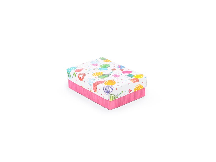 Celoroční dárková krabice o rozměrech 19 x 13,5 x 6 cm Dárková krabice v živých veselých barvách, kde základem je sytě růžová spodní část a barevně zdobené víko s motivy balónků, dárků, srdíček a dalších slavnostních symbolů. Je ideální pro oslavy jako narozeniny, dětské párty, svátky nebo jakoukoliv jinou příležitost. Díky pevnému materiálu a atraktivnímu designu může krabice sloužit nejen jako obal na dárek, ale i jako praktický úložný box pro pozdější použití, například na hračky, doplňky nebo památeční předměty. Při vložení jedné krabičky do košíku se automaticky přidá celá sada, která zahrnuje krabičky stejného designu, ale různých velikostí. Tato variabilita zaručuje, že budete mít krabičky vhodné pro různé příležitosti a typy dárků. Materiál: 1,5 mm karton, potažený papírem s potiskem Set obsahuje tyto krabice: 5371204 Krabice dárková D-L007-A 14,5x10x5 cm 5371205 Krabice dárková D-L007-B 17x12x5,5 cm 5371206 Krabice dárková D-L007-C 19x13,5x6 cm 5371207 Krabice dárková D-L007-D 22x16x6,5cm 5371208 Krabice dárková D-L007-E 24,5x17,5x7 cm 5371209 Krabice dárková D-L007-F 27,5x19,5x7,5 cm 5371210 Krabice dárková D-L007-G 29x21x8 cm 5371211 Krabice dárková D-L007-H 33x23,5x9 cm 5371212 Krabice dárková D-L007-I 35x25x10 cm 5371213 Krabice dárková D-L007-J 37x27x11 cm Uvedená cena je za 1 ks.