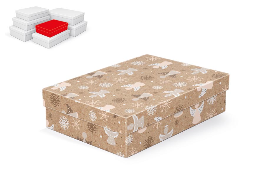 Vánoční dárková krabice o rozměrech 24 x 16 x 6 cm NÁHODNÝ MIX MOTIVŮ Dárková krabice s mixem vánočních motivů. Dodáváme pouze v setu 7 dárkových krabiček, které jsou v různých designech a různých velikostech. Při vložení do košíku se automaticky vloží i ostatní krabičky, tak aby jste měli v košíku vždy celý, kompletní set. Uvedená cena je za 1 ks. Materiál: 1,5 mm karton, potažený luxusním papírem Set obsahuje tyto krabice: 5371016 Krabice dárková vánoční A-V009-A 24x16x6 cm 5371017 Krabice dárková vánoční A-V009-B 26x17x6 cm 5371018 Krabice dárková vánoční A-V009-C 28x18x7 cm 5371019 Krabice dárková vánoční A-V009-D 30x19x7 cm 5371020 Krabice dárková vánoční A-V009-E 32x20x8 cm 5371021 Krabice dárková vánoční A-V009-F 34x22x8 cm 5371022 Krabice dárková vánoční A-V009-G 36x22x9 cm