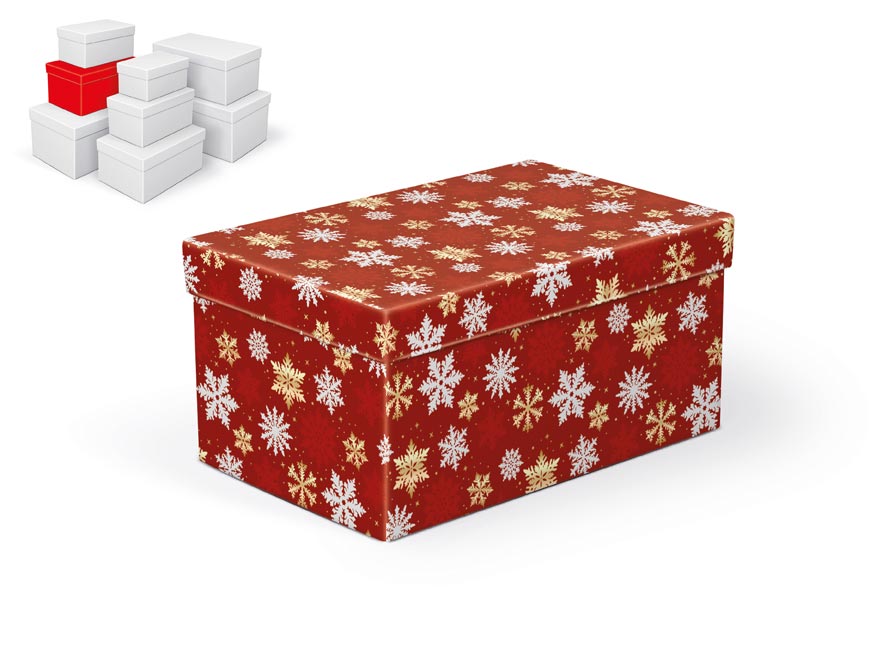 Vánoční dárková krabice o rozměrech 22 x 14 x 11 cm Vánoční dárková krabice je vyrobena z pevného kartonu a pokryta dekorativním papírem s vánočními motivy. Povrch krabice zdobí vzor s bílými a zlatými vločkami. Barva pozadí je červená, což vytváří krásný kontrast s barevnými motivy. Jejich slavnostní a elegantní vzhled je ideální pro balení vánočních dárků. Dodáváme pouze v setu 8 dárkových krabiček, které jsou ve stejném designu, ale v různých velikostech. Při vložení do košíku se automaticky vloží i ostatní krabičky, tak aby jste měli v košíku vždy celý, kompletní set. Materiál: 1,5 mm karton, potažený luxusním papírem SET OBSAHUJE TYTO KRABICE: 5371152 Krabice dárková vánoční B-C010-A 16x10x8 cm 5371153 Krabice dárková vánoční B-C010-B 18x11x9 cm 5371154 Krabice dárková vánoční B-C010-C 20x12x10 cm 5371155 Krabice dárková vánoční B-C010-D 22x14x11 cm 5371156 Krabice dárková vánoční B-C010-E 24x16x12 cm 5371157 Krabice dárková vánoční B-C010-F 26x17x13 cm 5371158 Krabice dárková vánoční B-C010-G 28x18x14 cm 5371159 Krabice dárková vánoční B-C010-H 30x19x15 cm Uvedená cena je za 1 ks.
