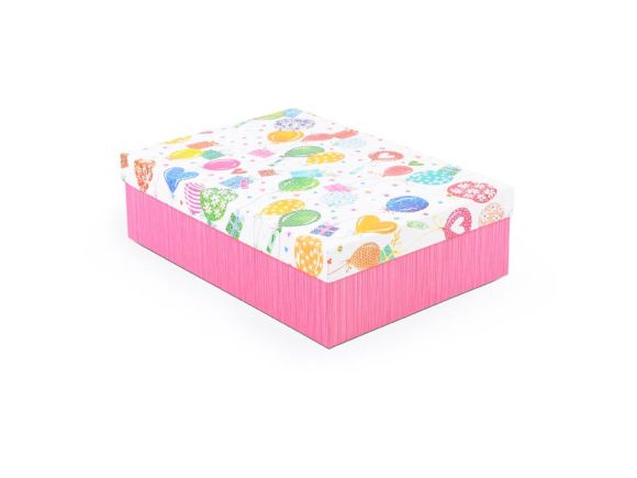 Celoroční dárková krabice o rozměrech 35 x 25 x 10 cm Dárková krabice v živých veselých barvách, kde základem je sytě růžová spodní část a barevně zdobené víko s motivy balónků, dárků, srdíček a dalších slavnostních symbolů. Je ideální pro oslavy jako narozeniny, dětské párty, svátky nebo jakoukoliv jinou příležitost. Díky pevnému materiálu a atraktivnímu designu může krabice sloužit nejen jako obal na dárek, ale i jako praktický úložný box pro pozdější použití, například na hračky, doplňky nebo památeční předměty. Při vložení jedné krabičky do košíku se automaticky přidá celá sada, která zahrnuje krabičky stejného designu, ale různých velikostí. Tato variabilita zaručuje, že budete mít krabičky vhodné pro různé příležitosti a typy dárků. Materiál: 1,5 mm karton, potažený papírem s potiskem Set obsahuje tyto krabice: 5371204 Krabice dárková D-L007-A 14,5x10x5 cm 5371205 Krabice dárková D-L007-B 17x12x5,5 cm 5371206 Krabice dárková D-L007-C 19x13,5x6 cm 5371207 Krabice dárková D-L007-D 22x16x6,5cm 5371208 Krabice dárková D-L007-E 24,5x17,5x7 cm 5371209 Krabice dárková D-L007-F 27,5x19,5x7,5 cm 5371210 Krabice dárková D-L007-G 29x21x8 cm 5371211 Krabice dárková D-L007-H 33x23,5x9 cm 5371212 Krabice dárková D-L007-I 35x25x10 cm 5371213 Krabice dárková D-L007-J 37x27x11 cm Uvedená cena je za 1 ks.