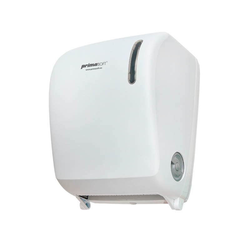 Popis k výrobku: Zásobník PrimaSOFT AUTOCUT - na ručníky v rolích zásobník určený pro role o průměru do 20 cm, rozměry 40,6 × 25 × 9 × 30,6 cm, hmotnost 3,1 kg, vyroben z bílého abs plastu, dávkování pouze jednoho útržku, nadstandardní kapacita zajišťuje méně časté doplňování rolí, snadná údržba a čištění, atraktivní vzhled, určeno pro role Automatics /152677/