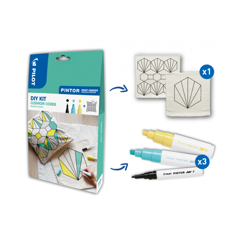 Akrylový popisovač Pintor, který píše téměř na všechny povrchy. Sada v dárkovém sáčku obsahuje: 1 x Pintor (hrot Fine): černá, 2x Pintor (hrot Broad) pastelově zelená, pastelově žlutá + 1 x povlak na polštář. Vysoce odolný vláknový hrot, inkoust na vodní bázi s akrylovými složkami a vysokým obsahem pigmentů, vodě a světlu odolný. Vysoká krycí schopnost, mix barev. Permanentní v závislosti na povrchu a dalším ošetření stopy (např. ošetření bezbarvým lakem, přežehlení, fixace vysokou teplotou atd.). Neskladujte hrotem dolů. Průměr hrotu: 2,9 mm; šířka stopy: 1,5 mm. Průměr hrotu: 8,0 mm; šířka stopy: 8,0 mm. Rozměr balení 155 x 40 x 265 mm (š x hl x v).