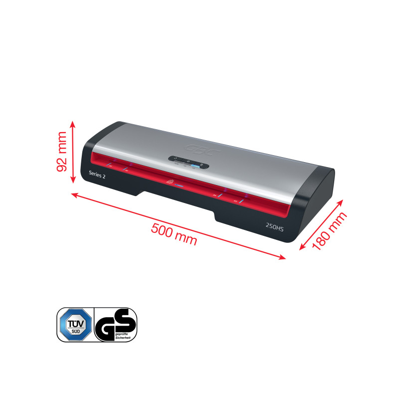 Laminátor GBC 250HS A3 je navržen pro profesionální prostředí, kde je potřeba efektivně chránit dokumenty a šetřit čas. Zahřeje se za pouhou 1 minutu a list A4 (75 mikronů) zalaminuje za 36 sekund. V kombinaci s laminovacími kapsami GBC pro rychlou laminaci lze dobu zkrátit až o 33 %.