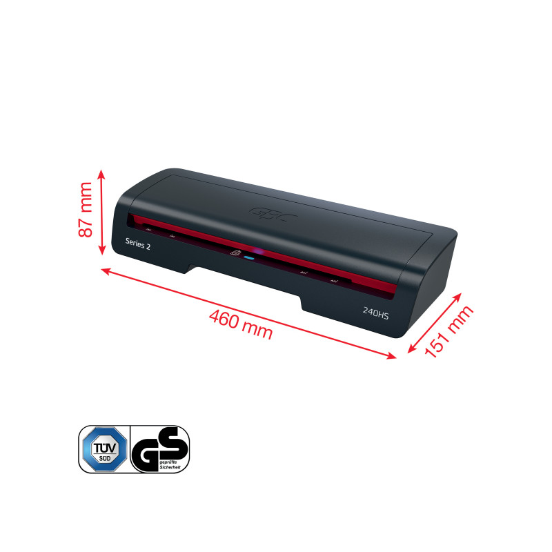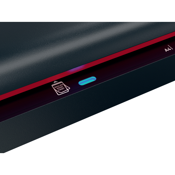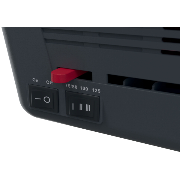 GBC 240HS A3 je vysokorychlostní laminátor, který kombinuje moderní design s efektivním výkonem. Skvěle se hodí do domácností i domácích kanceláří, kde oceníte jeho rychlost i jednoduché ovládání. Zahřeje se za 2 minuty a A4 dokument (75 mikronů) zalaminuje za 45 sekund. V kombinaci se speciálními kapsami GBC pro rychlou laminaci můžete dobu zkrátit až o 33 %. Přehledný ovládací přepínač umožňuje výběr ze tří tlouštěk kapsy (75–125 mikronů), a uvolňovací páčka pomáhá snadno vyjmout případně zaseknutou kapsu. LED panel s chytrou signalizací ukazuje stav přístroje – červená kontrolka značí zahřívání, modrá se zvukem indikuje připravenost k použití. Laminátor se automaticky vypíná po 15 minutách nečinnosti, čímž šetří energii. Výsledkem je vždy hladká a profesionální laminace dokumentů, fotografií nebo výtvarných prací. Stylové černo-červené provedení doplní každý moderní interiér.